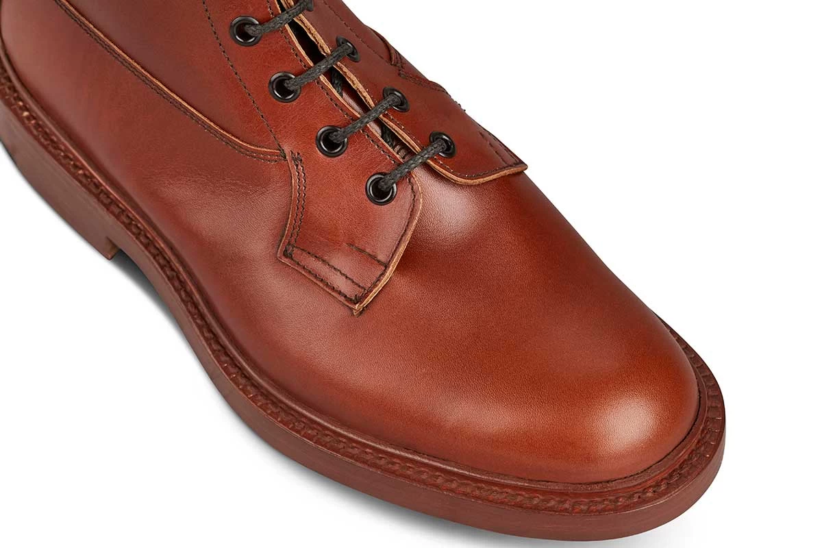 Our men’s Burford country boot is purposely unassuming in its design; a clean seven eyelet derby ankle boot. The Burford is typically ‘Tricker’s’ in its build: a half bellows tongue is folded and attached to the shoe to provide a watertight seal, the storm welt provide a watertight bond between the sole and upper.