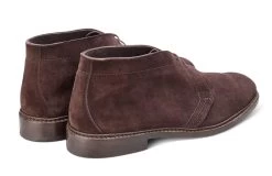 The Chukka boot typically features a simple design with two to three eyelets, a rounded toe, and ankle-length height.