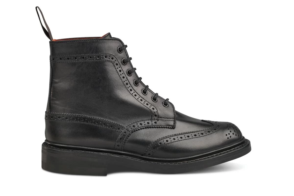 Stephy is Tricker’s most iconic women’s boot. Made originally as a country boot, but now worn by women all around the world across fields and cities. The Stephy Derby ankle boot is instantly recognisable for its brogue patterning synonymous to Tricker’s; however its strong, solid build and seven eyelets make it as recognisable, whilst by no means flashy. A half bellows tongue is folded and attached to the boot to provide a watertight seal, with the storm welt providing an additional watertight seal between the shoe’s upper and sole.