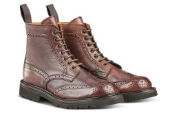 Stephy is Tricker’s most iconic women’s boot. Made originally as a country boot, but now worn by women all around the world across fields and cities. The Stephy Derby ankle boot is instantly recognisable for its brogue patterning synonymous to Tricker’s; however its strong, solid build and seven eyelets make it as recognisable, whilst by no means flashy. A half bellows tongue is folded and attached to the boot to provide a watertight seal, with the storm welt providing an additional watertight seal between the shoe’s upper and sole.